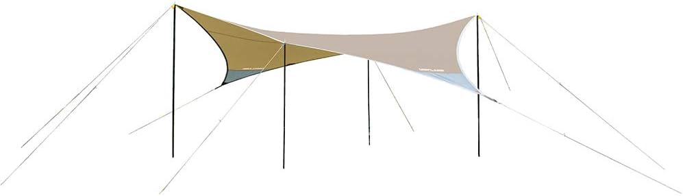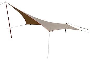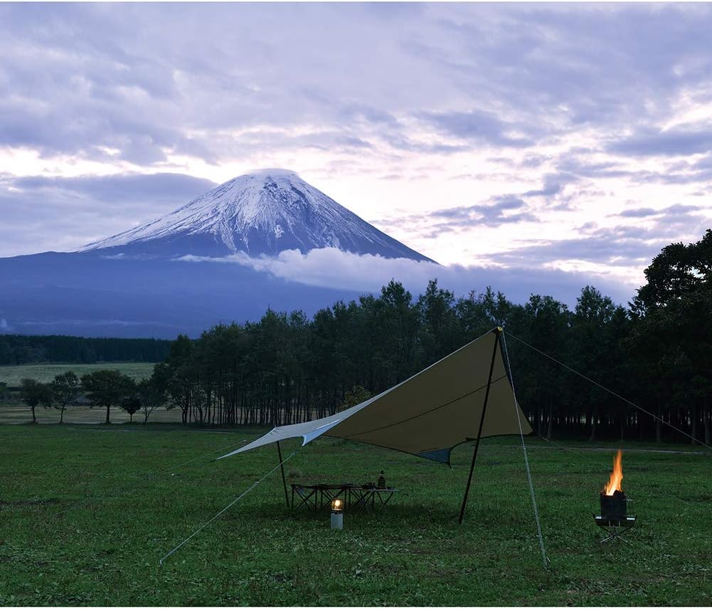「REVOシリーズ」に代表されるユニフレームのタープは、非対称の多角形デザインで風を受け流し、きれいに張れるのが魅力です。生地のテンションが均一に保たれるため、雨や風でも形が崩れにくい。国内メーカーならではの実用性と堅実な品質で、長く使える一張りです。 【こんな人におすすめ】 見た目の美しさと設営安定性を両立したいソロ・デュオキャンパー 【購入時のチェックポイント】 変形タイプの張り方に慣れているか、サブポールの長さ、ガイラインの構成