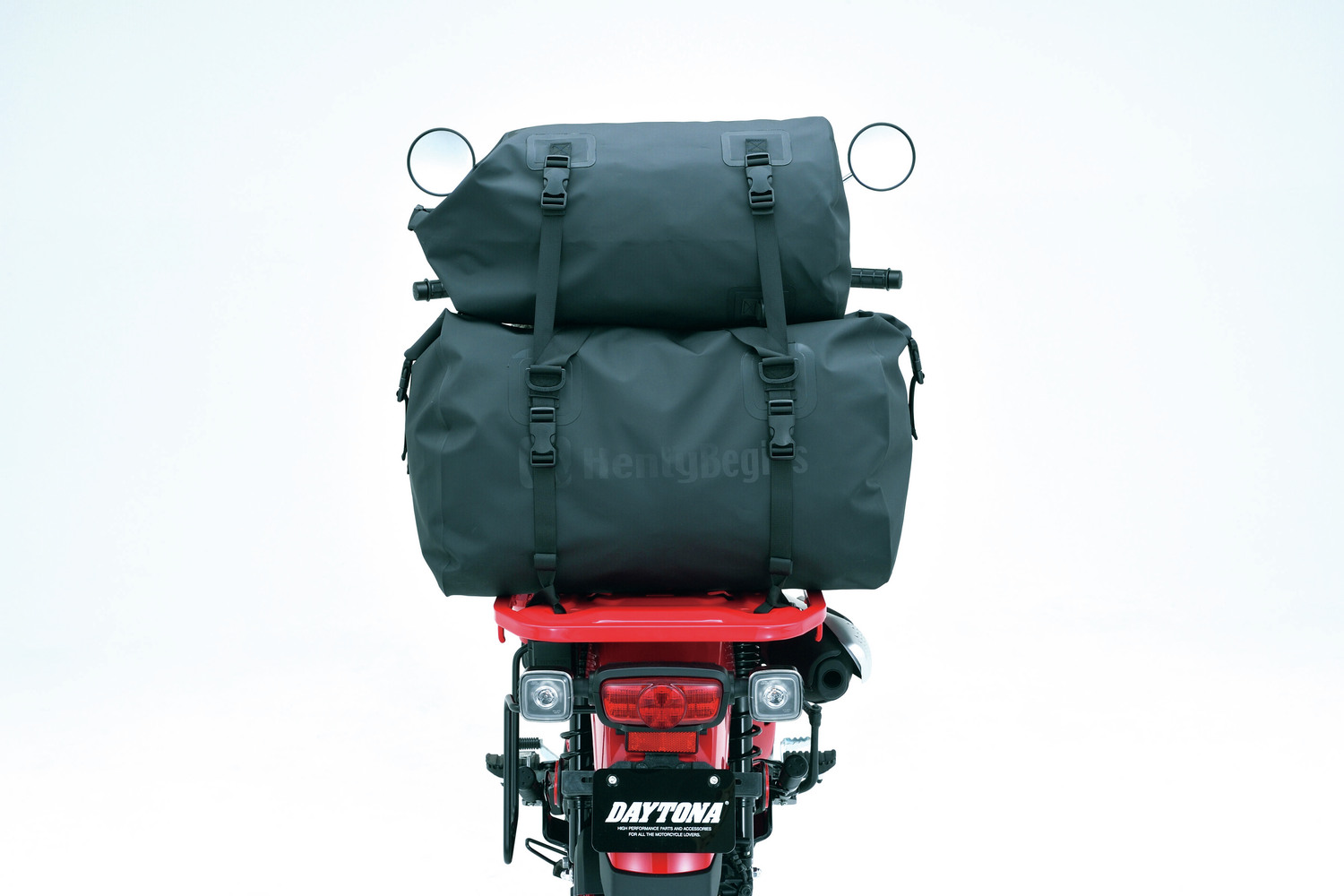・日帰りツーリング(10〜20L程度) 財布やスマホ、レインウェアといった最低限の荷物に適したサイズ。街乗りやショートツーリングでも使いやすい。 ・1〜2泊ツーリング(30〜40L程度) 着替えや洗面道具、宿泊に必要な荷物が収まる容量。ホテルやペンション泊にちょうど良い。 ・キャンプ・長期ツーリング(50L以上) テントや寝袋、調理器具まで積載可能。60〜80Lクラスなら重心や安定感も意識する必要があります。 初心者は「どれくらいの荷物を積むのか」をイメージして選ぶと失敗が少なく、中級者は「容量とバイクとのバランス」を意識するとより快適です。