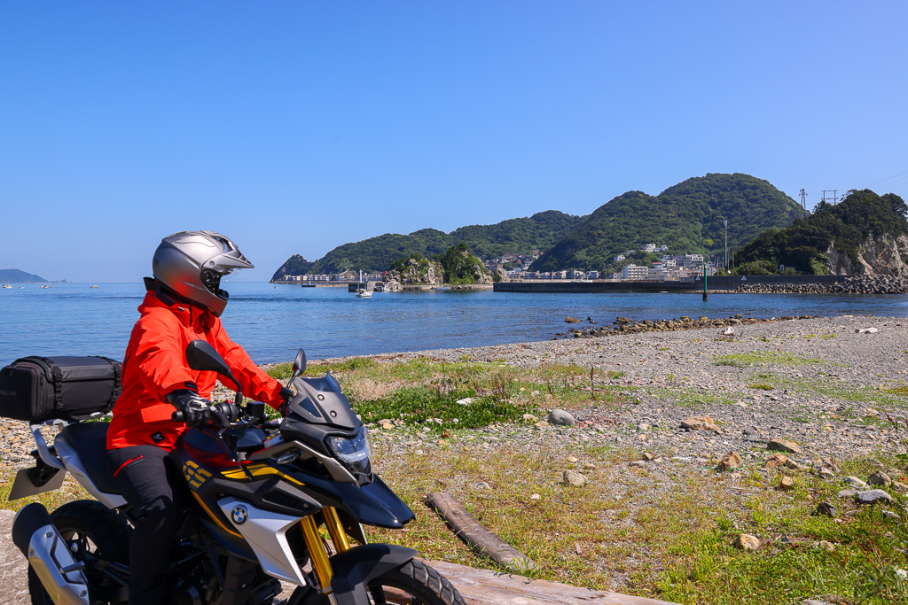撮影3日目、目指すは大分県の県道611号(四浦日代線)の終点。その途中、巨大しめ縄が印象的な豊後二見ヶ浦(ツーリングマップル九州沖縄21C-7)に立ち寄り散策。そのまま県道541号から611号へ走りつないで、時々撮影しながら終点の間元(まもと)港へ到着。 そのすぐ先には保戸島が見えて、この静かな漁港と保戸島の賑やかなギャップがなんとも。 そして、ココで表紙撮影終了。 治武カメラマンはツーリングマップル中四国の撮影のために四国へ向かい、私は高千穂へ向けて出発。 本当に天候に恵まれた3日間で◎、今年も無事に表紙撮影の3日間が終わって何よりでした。 安全第一、これからもご安全に!