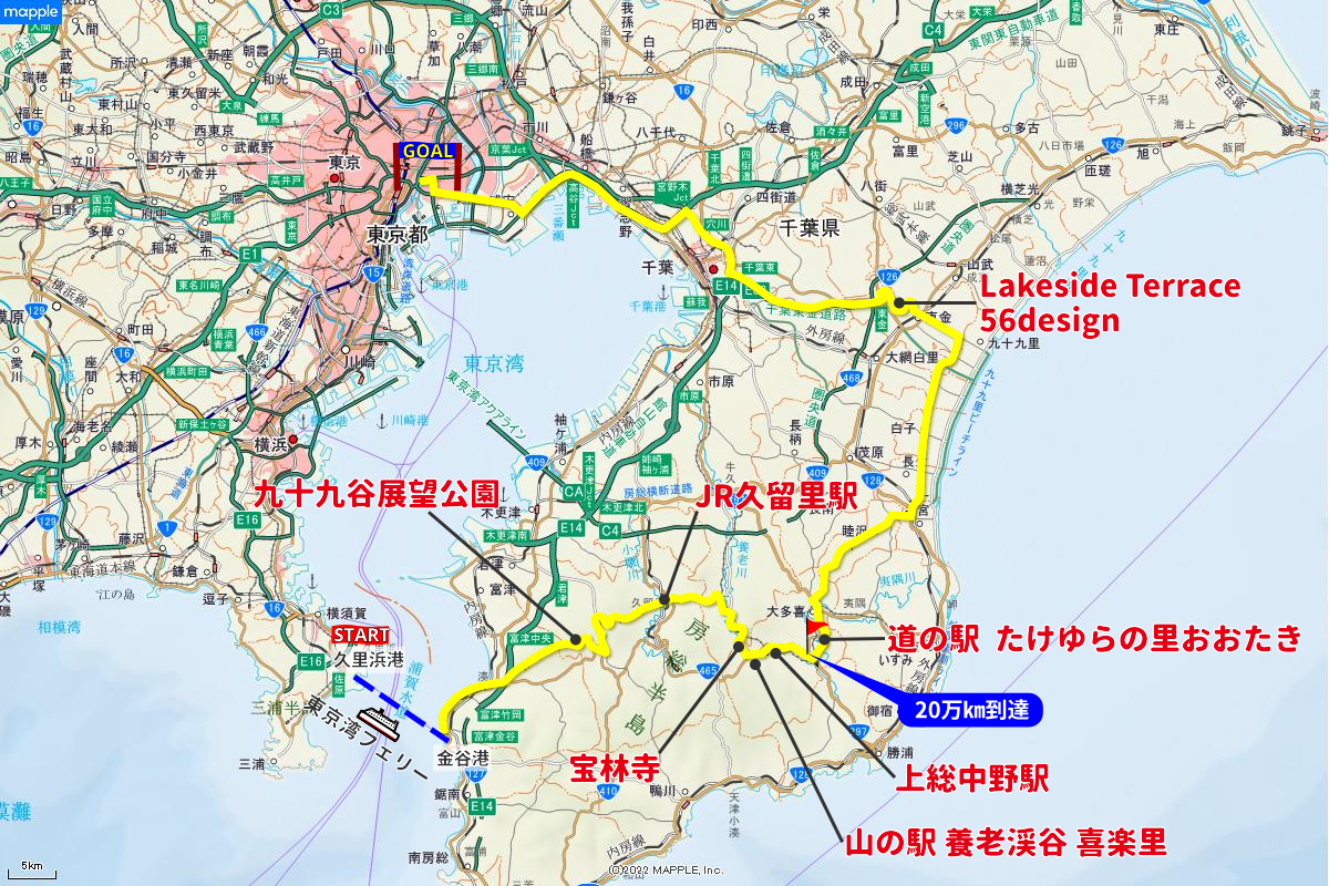 地球狭しとバイクを走らせている賀曽利さん。ここ数年の旅の相棒はスズキのVストローム250。このバイクの走行距離10万km到達には立ち会えなかったけれど、20万kmの瞬間はぜひその現場にいて、感動をわかちあいたい、と2021年頃から機会がある度に残り距離を賀曽利さんへ聞いていた。しかし、到達前におきたまさかの事故。バイクも長期修理となり、残り距離のカウントダウンも仕切り直しとなった。 昨年の秋頃から、そろそろですかね、とツーリングマップル編集長の舛木さんと気にしていたが、3月末に会ったときに残りがそろそろ100kmを切りそうだと聞いた。「ぜひ、20万km到達の瞬間に立ち会いたいですね」と、話しが盛り上がって、「では、ツーリングの企画をよろしく」と舛木さんから依頼を受けた。そんなわけで、重責を感じつつ、記念すべきツーリングを企画することになった。 20万㎞までの残りは約100km。できれば、到達場所は岬や峠などのランドマークにして、後生に伝えていきたい。また、舛木さんからGOALは昭文社にしましょう、と提案があったので、それらを検討材料に地図で距離を確認しながら思案した結果、行き先を房総半島に決定した。