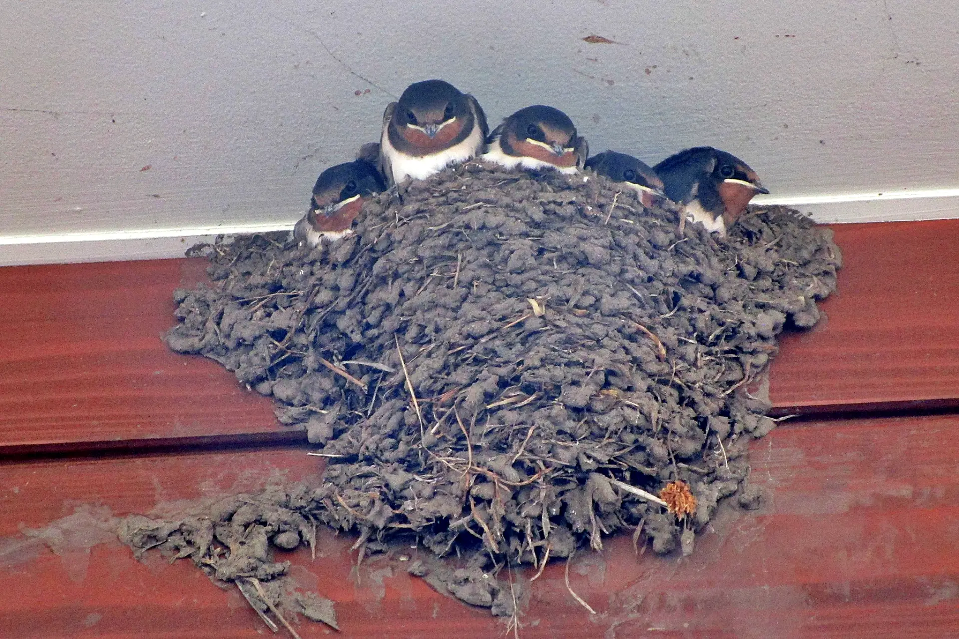 元の道の駅「のだ」のツバメの巣。まもなく5羽が巣立っていく