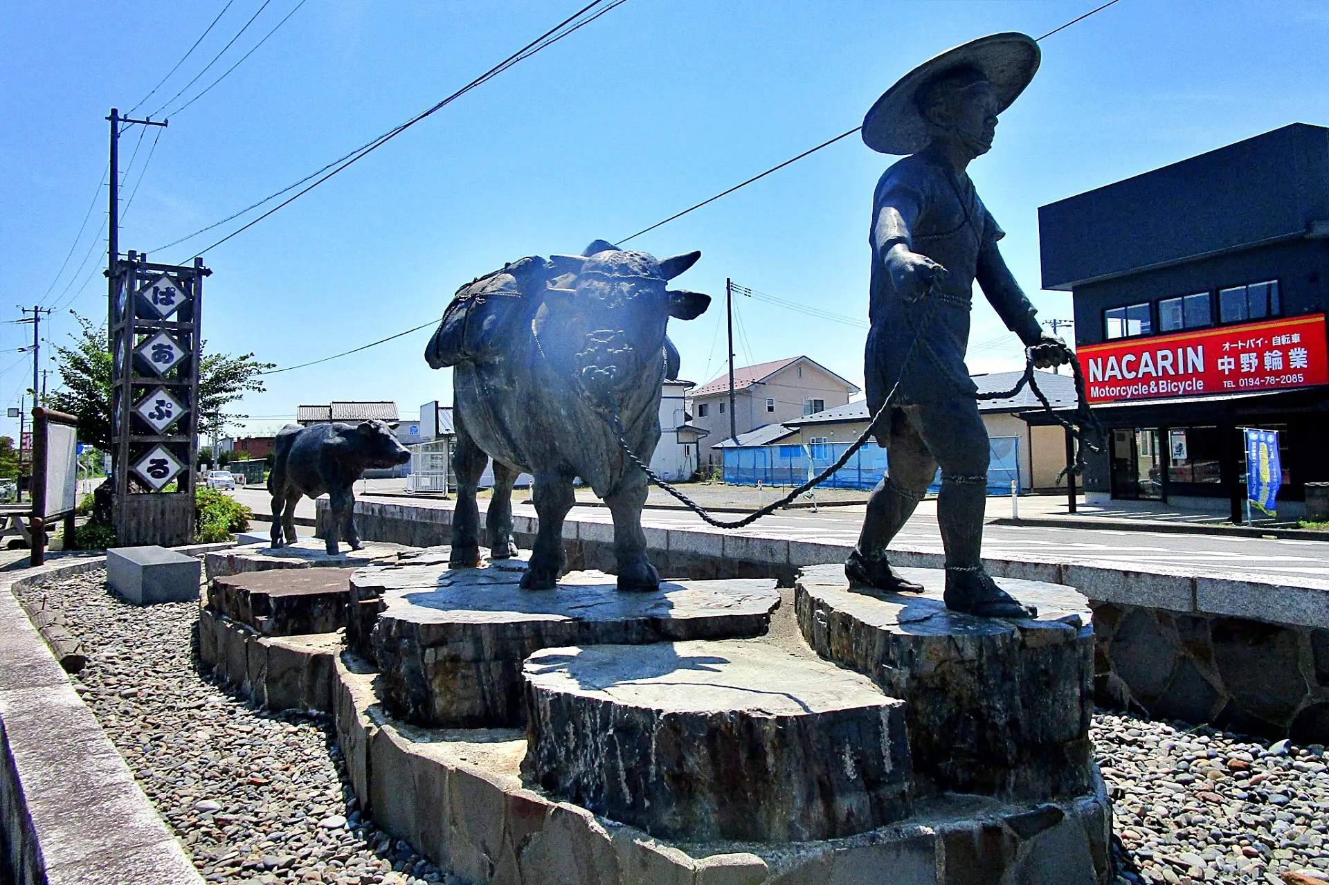 元の道の駅「のだ」の「牛方像」。ここからは「塩の道」をたどれる