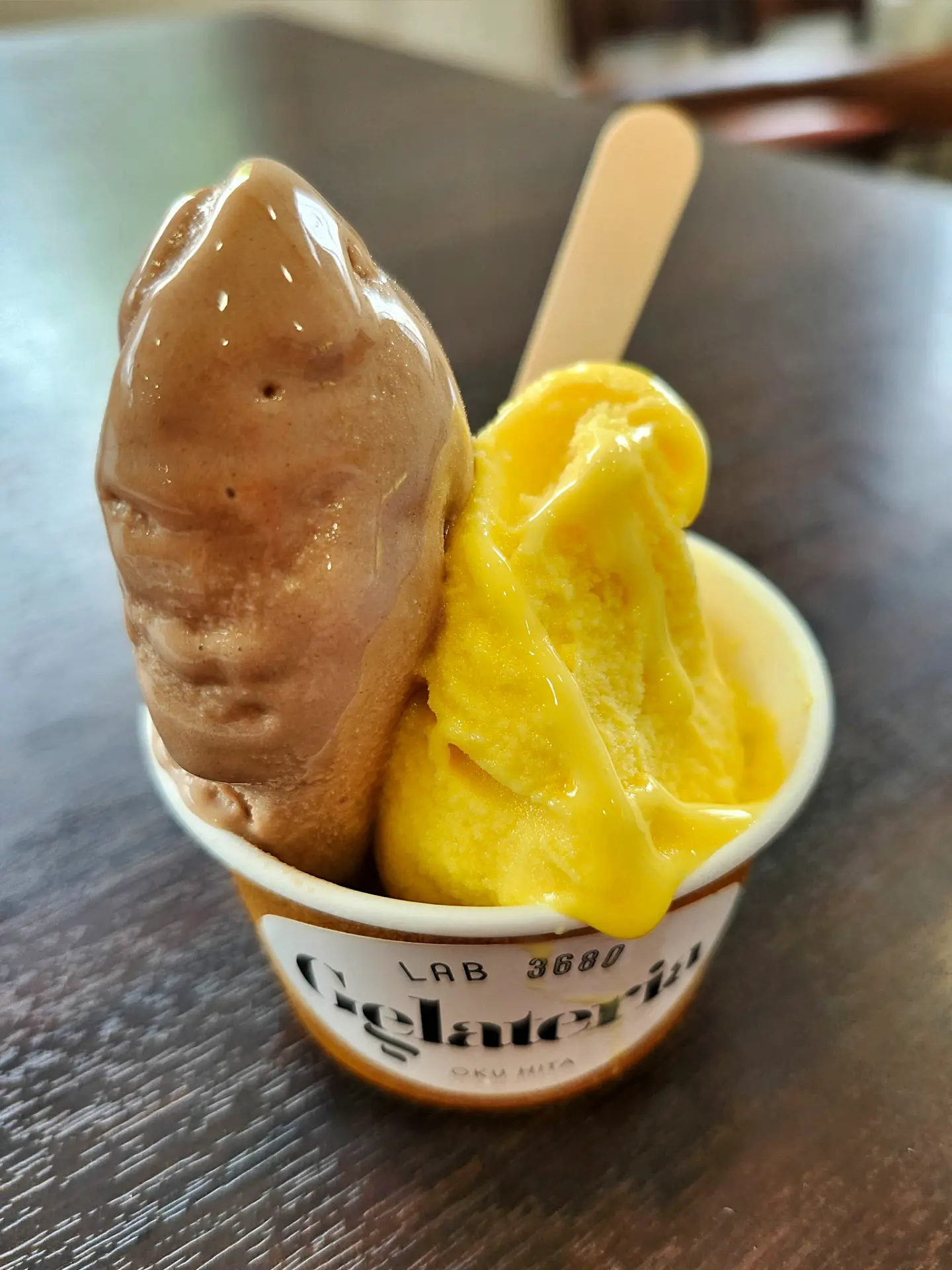 大分県日田市大山町の名産品が揃う「道の駅 水辺の郷おおやま」の、「GELATERIA LAB3680 OKUHITA」では地元の味覚をジェラートで味わえる。例えば、日田のスイカや梨、大山の梅、イチゴなど季節によって種類が変わるので、現地で「へぇ~こんなフレーバーがあるんだぁ~」とメニューを見るのが楽しみのひとつ。同じ敷地内には、ソフトクリームを味わえる「なごみ」もあるので、どちらにするか迷っちゃいます。 また、ここは進撃の巨人の作者、諫山先生の出身地であることから、進撃の巨人とコラボしたスイーツ、ミュージアムも併設しているので興味ある方は是非! ツーリングマップル➡九州沖縄 P. 18 K-1