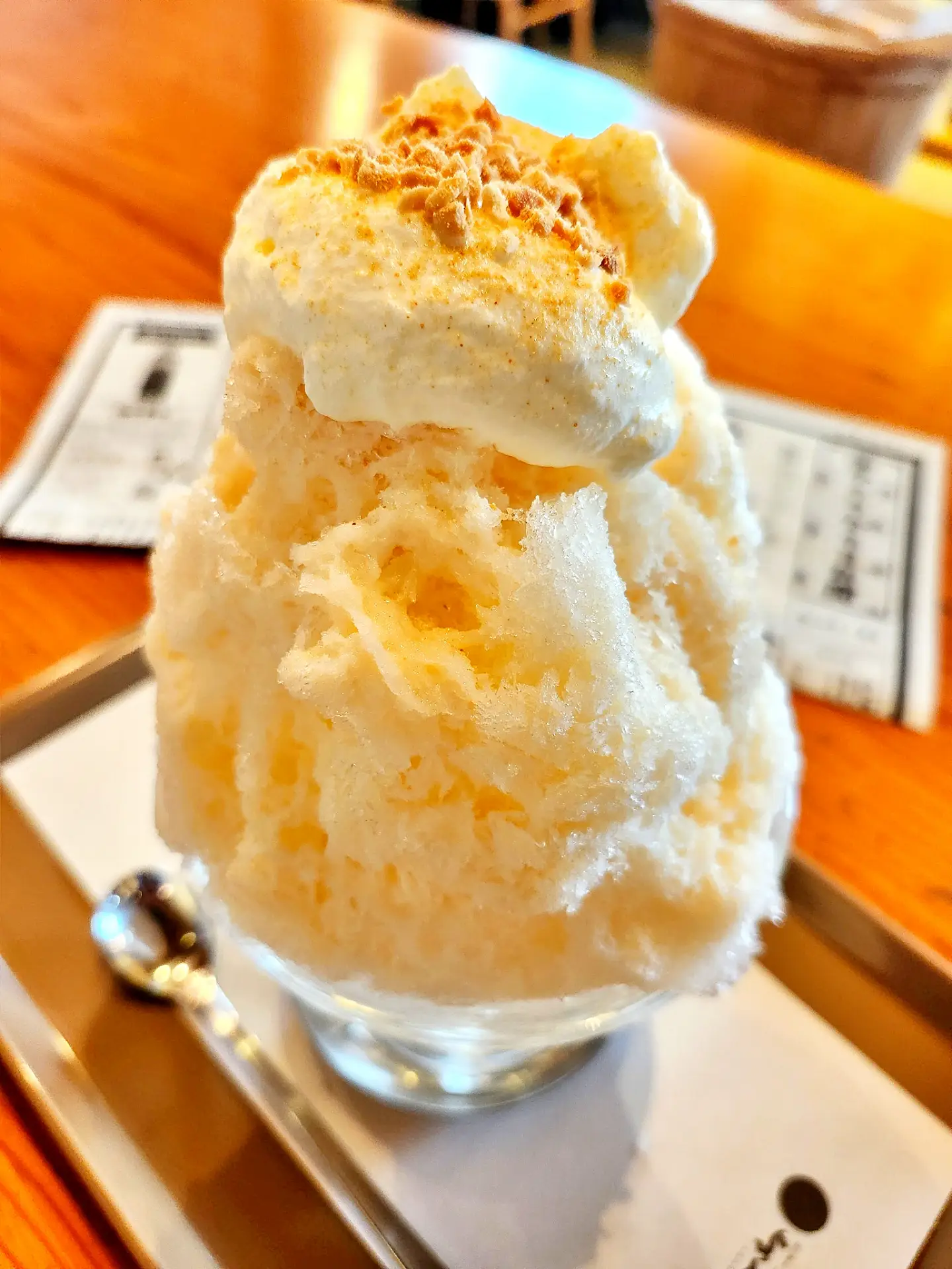 夏季限定のミルク醤油かき氷。キャラメル風味。 残念ながら今季は9月末で提供終了