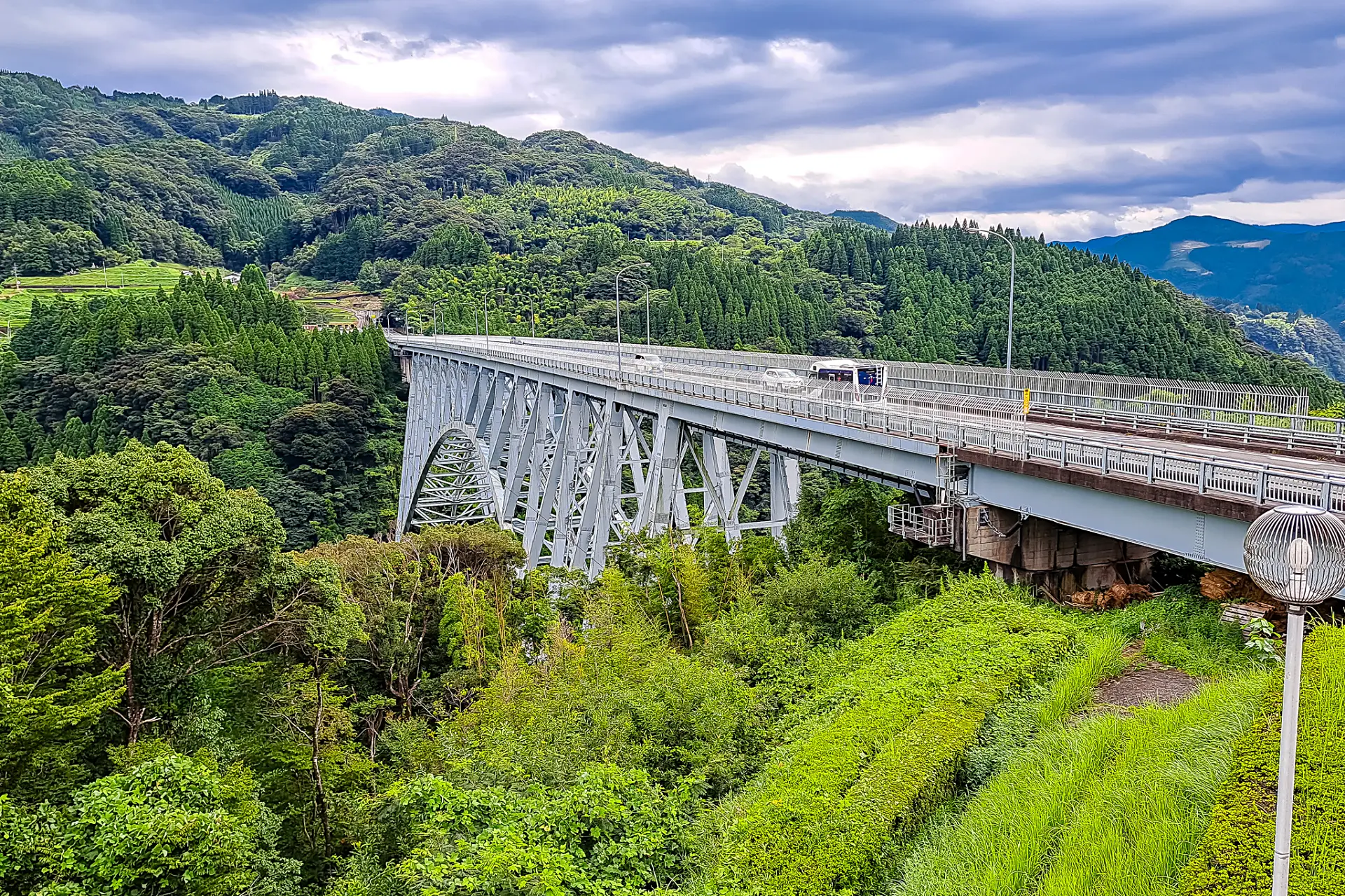 宮崎県日之影町にある「青雲橋」は、日本有数の高さ(水面からの高さ137m、長さは410m)を誇る、谷を渡るトラスアーチが美しい橋。その橋のたもとにある「道の駅 青雲橋」には、日之影町の特産品が勢ぞろい。とくに柚子や栗を使ったスイーツが充実で、柚子を使ったゼリーのような食感の「ゆずっこ”」栗の素朴な味わいが人気の「栗きんとん栗九里」などが定番の人気。もちろんソフトクリームでも地産を味わえる。夏はキンカン、これからの季節は栗など季節限定もあるので、訪れた季節の味に出会える一品。 ツーリングマップル➡ 九州沖縄 P.33 K-6