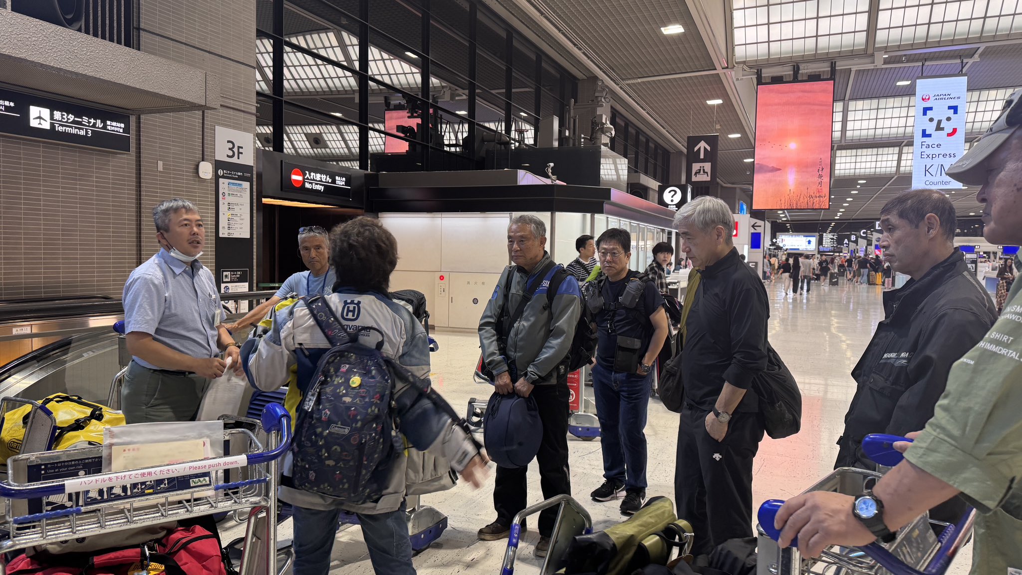 成田空港で持ち物確認をする一行。忘れ物と「持って行ってはいけないもの」をチェック