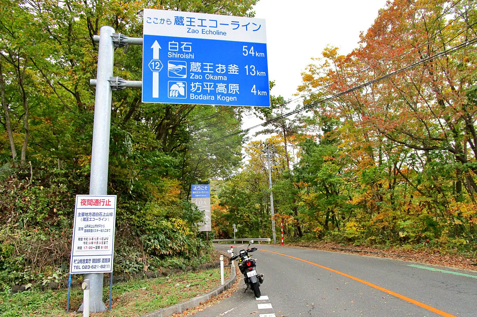 その中でも山形県側では「坊平高原(ぼうだいらいこうげん)」、宮城県側では「駒草平(こまくさだいら)」と「不動滝」(ツーリングマップル東北 P.29 J-2)、そして「三階の滝」(ツーリングマップル東北 P.29 J-2)の周辺の紅葉が見事。蔵王のシンボル、「御釜」(ツーリングマップル東北 P.29 H-1)の紅葉も見事だ。 国道457号の青根温泉から、秘湯の峩々温泉(ががおんせん)に行く途中には紅葉台がある。宮城県側へ下っていくと遠刈田温泉(とおがったおんせん)に出る。そこから東北道の白石ICまでは県道12号がメインルートだが、国道457号で行くのも面白い。 ※蔵王エコーライン、蔵王ハイラインは10月14日から夜間通行止。11月4日午後5時から冬期閉鎖