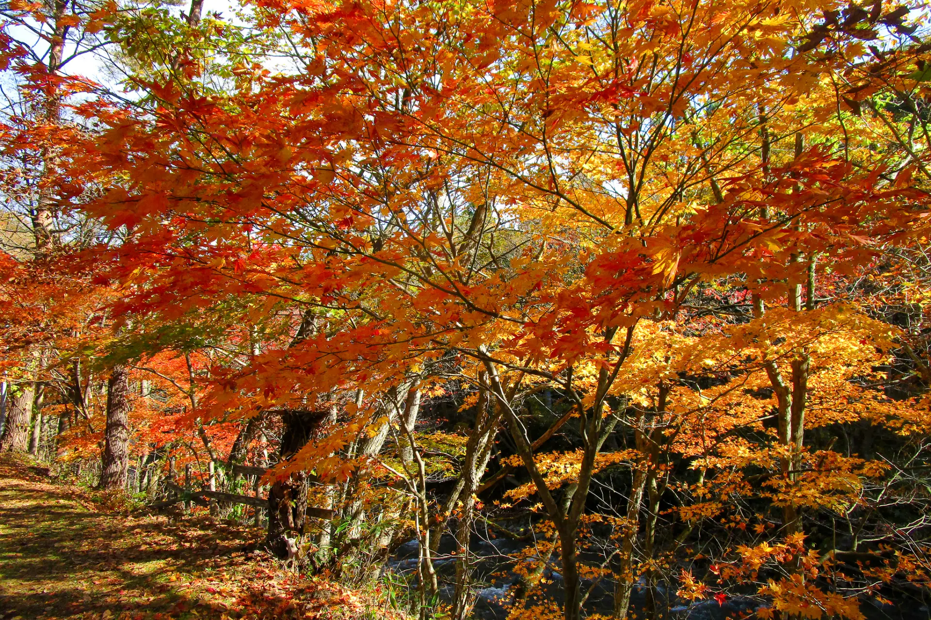 紅葉真っ最中の「つばくろ谷」をまたぐ不動沢橋