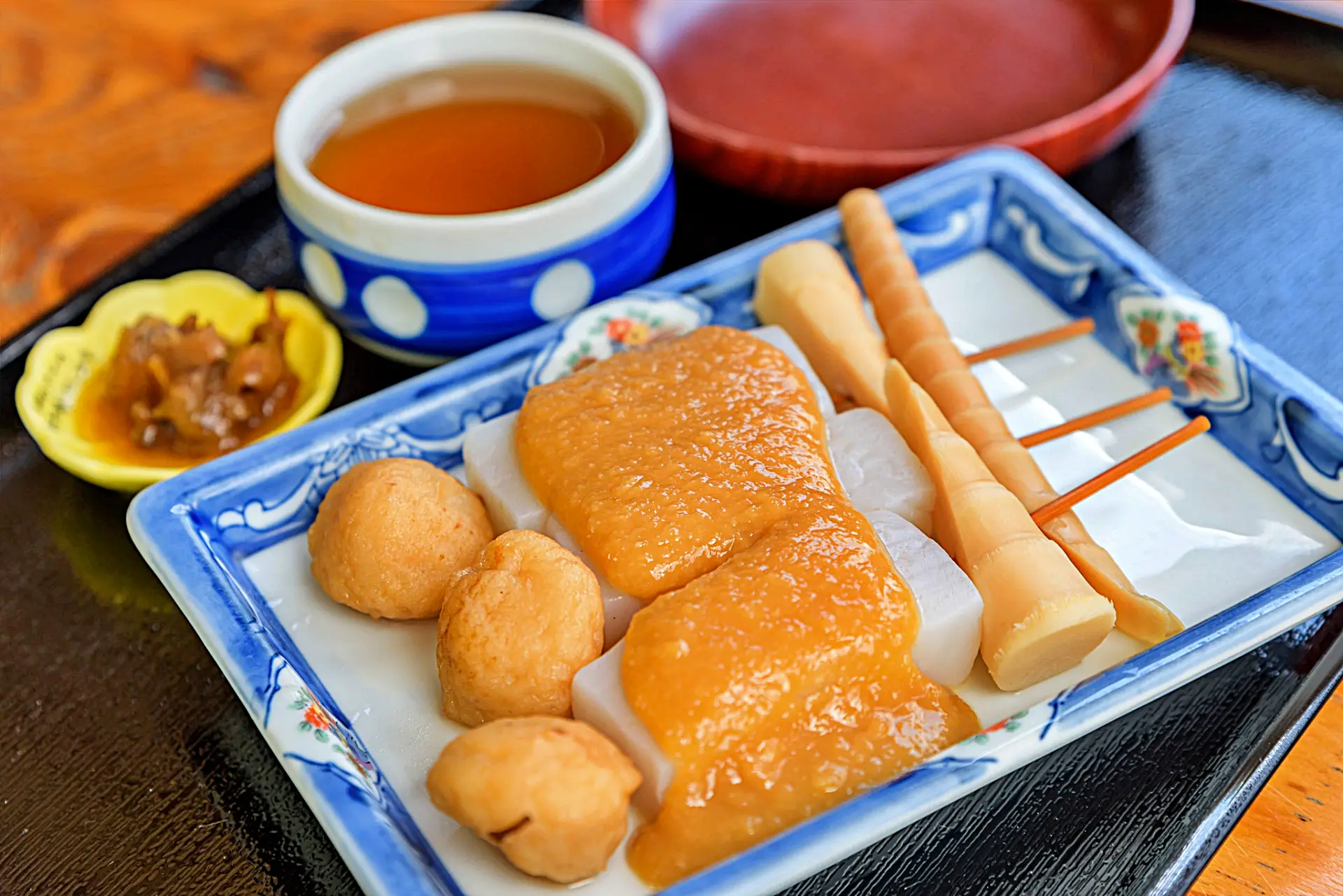 萱野高原「萱野茶屋」の「生姜味噌おでん」※ツーリングマップル東北 P.94 G-5