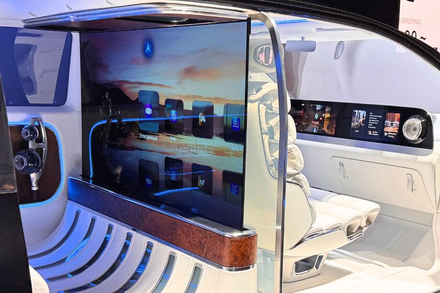 2026年から発売予定という、メルセデス・ベンツのラグジュアリーなバン「Mercedes-Benz Vision V(ビジョンV)」も展示。注目されていました。何すかねこの後部シートの大画面は。中に入るとシアタールームかラウンジかって感じの空間で、車に乗ってる感もないです。住める。