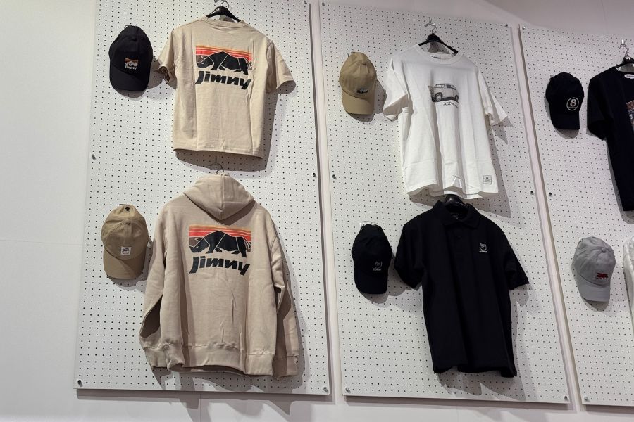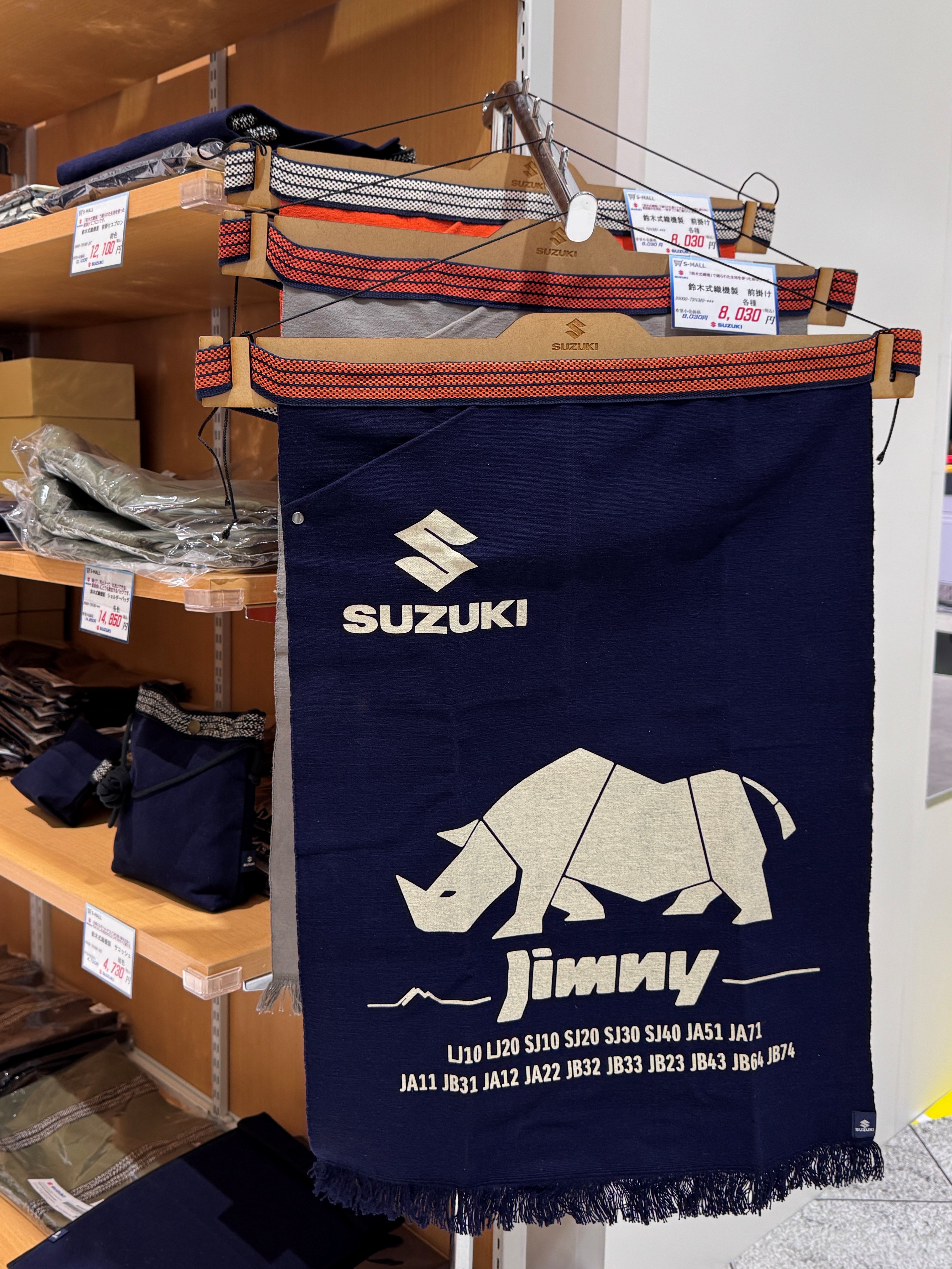 ジムニーのシンボルマークとして知られるサイのマークは、ジムニーオーナーでなくとも使いたくなるかわいさですよね。スズキの公式オンラインモール「S-MALL」で売っているグッズと同じものがこちらでも展示・販売されていました。