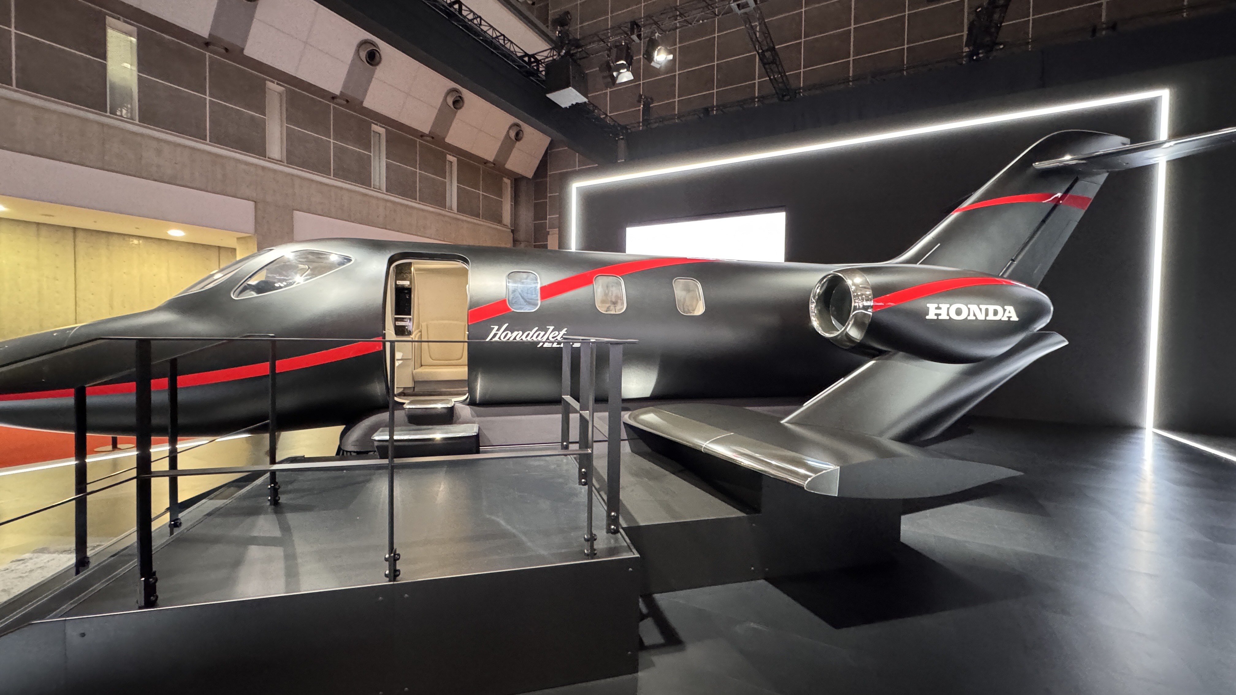 会場に入ると真っ先に目に入るのが、ホンダが手掛ける最新小型ビジネスジェット「HondaJet Elite II」。迫力ある姿にワクワクします!