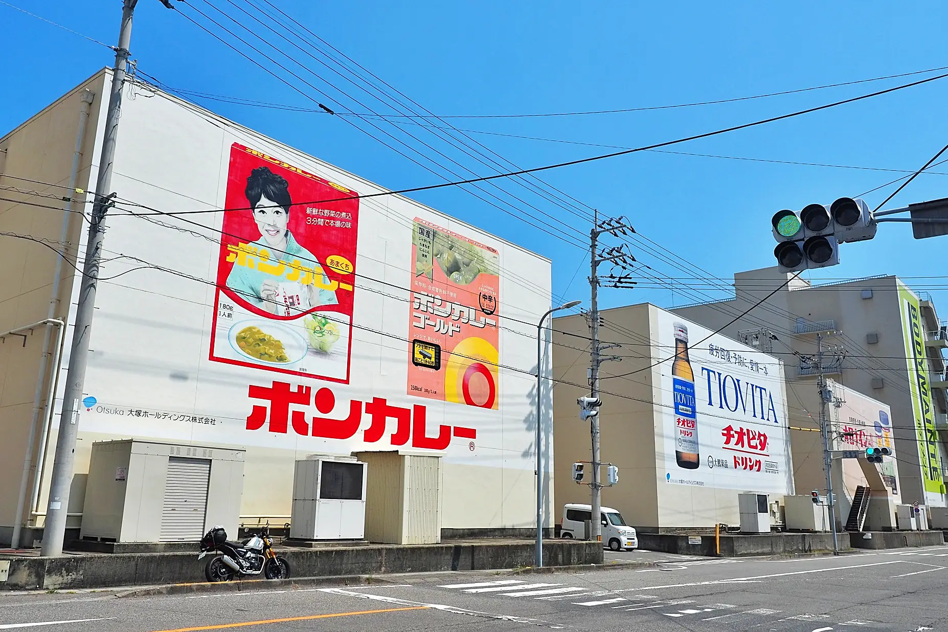 鳴門市は大塚製薬創業の地。自社製品が大きな壁一面に描かれている