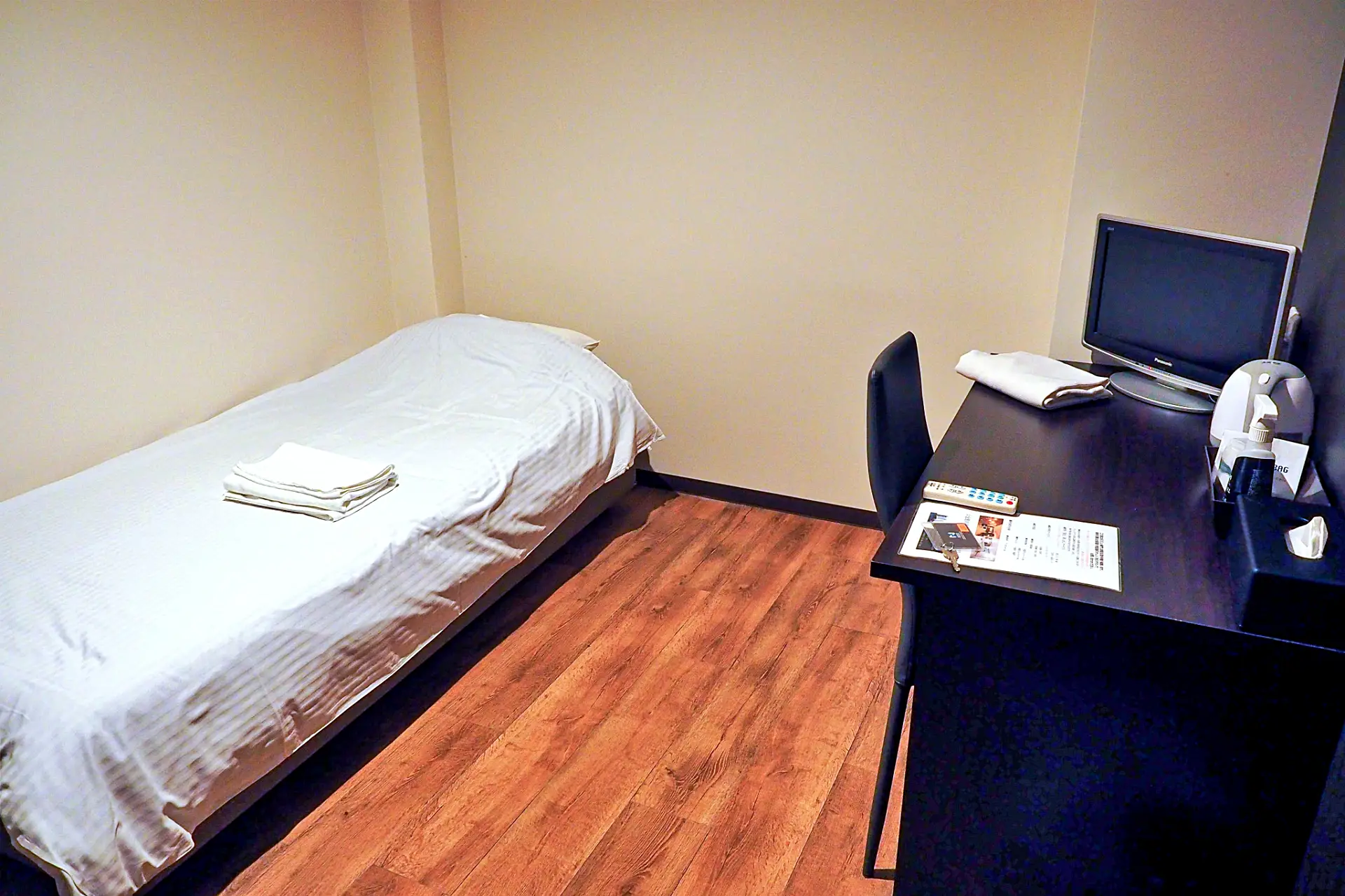 6人部屋の洋室。個室はいろいろなタイプがあり、1人利用だと3400~3600円