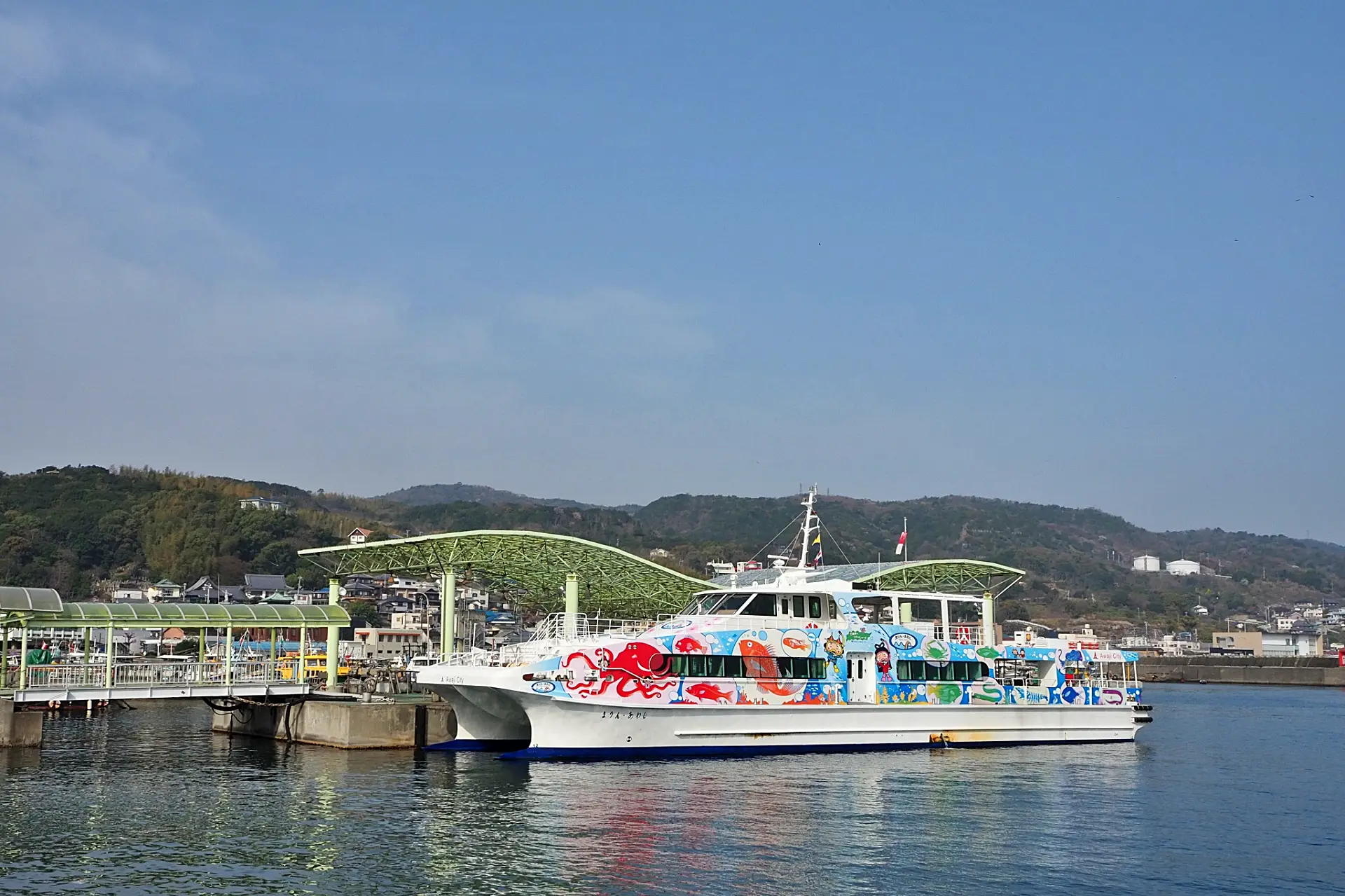 明石港から明石海峡大橋の下を通って、淡路島の岩屋港までを13分で結ぶ淡路ジェノバライン。125㏄未満のバイクは載せられる