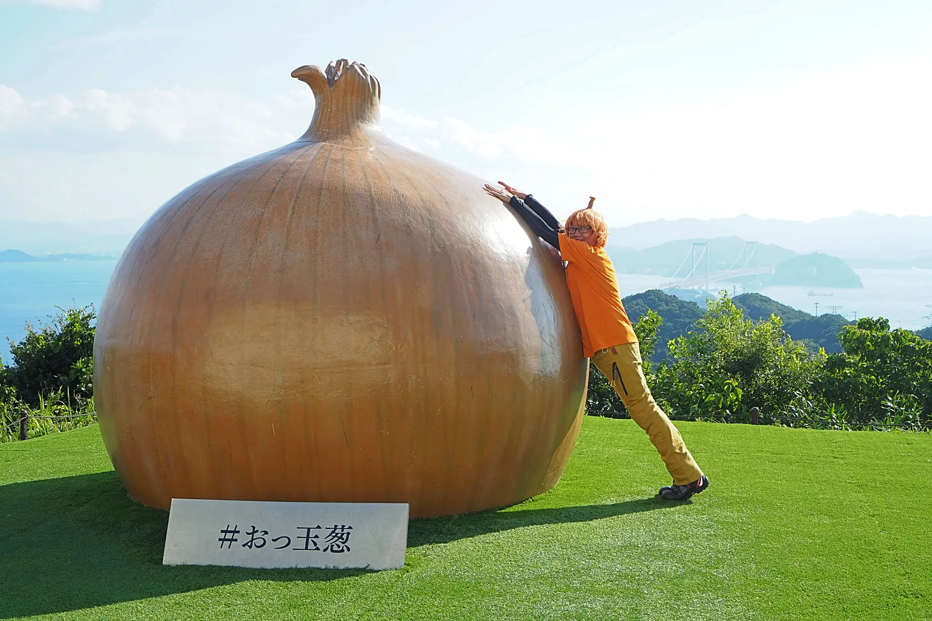 大鳴門峡記念館(ツーリングマップル関西 P.15<中国・四国 P.61> F-3)。高さ2.5m、直径2.8mの大きな玉ねぎオブジェ「おっ玉葱」がある
