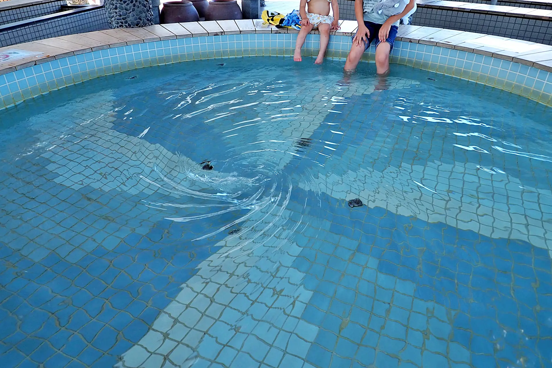 道の駅福良にある足湯。湯がグルグルと回っている