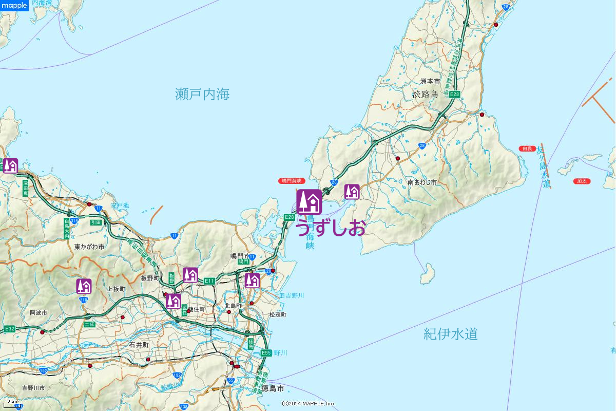 そして、120種類ものオリジナルアイテムが魅力の「ショップうずのくに」に、「囲炉裏食堂うずしお」や「あわじ島バーガー」、あわじ島ミルクスタンド+(プラス)と、買物もグルメも充実しています。 ツーリングマップル➡関西 P.15(中国・四国 P.61)E-3