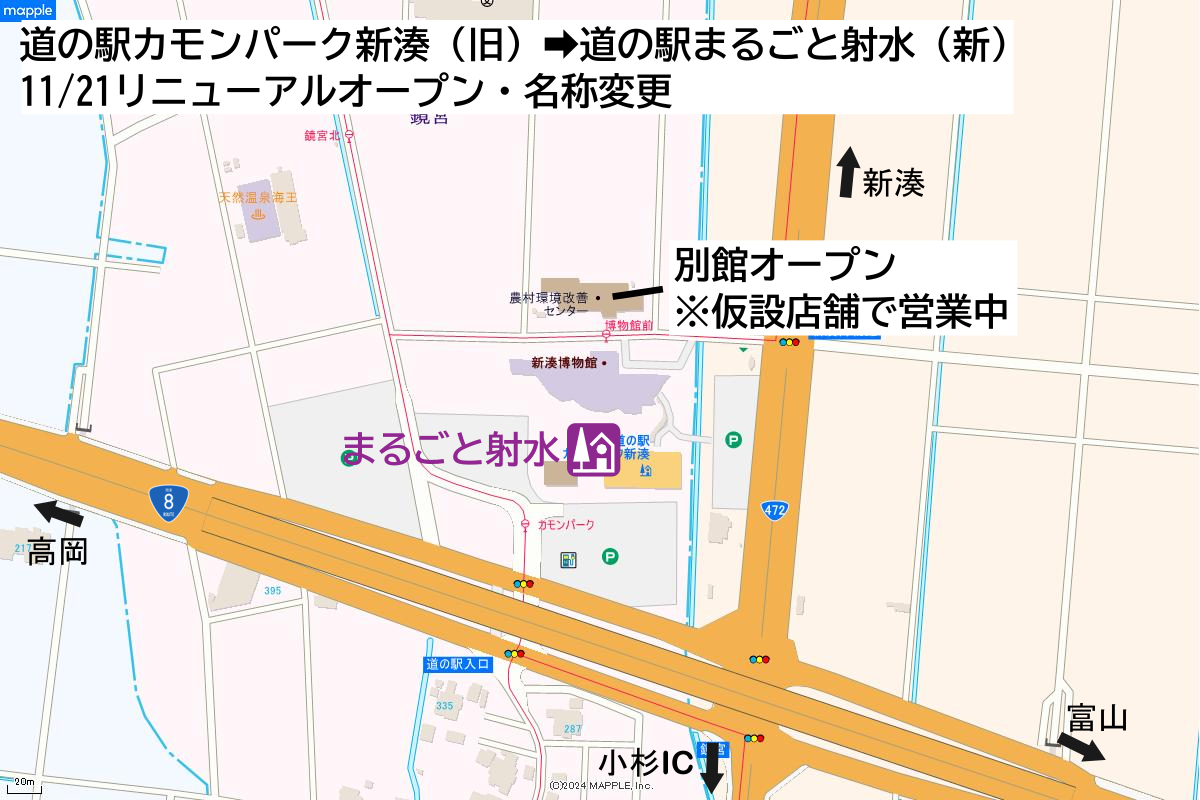2025年11月21日、富山県射水市の国道8号沿いの「道の駅カモンパーク新湊」がリニューアルオープンします。名称も「道の駅まるごと射水」に変更されます。現在の駅は物産施設のみになり、新しく別館として、飲食施設が増築されます。 リニューアルオープンまでは、仮設施設で、飲食のみ利用可能となっています。 ツーリングマップル➡中部北陸 P.91 E-3