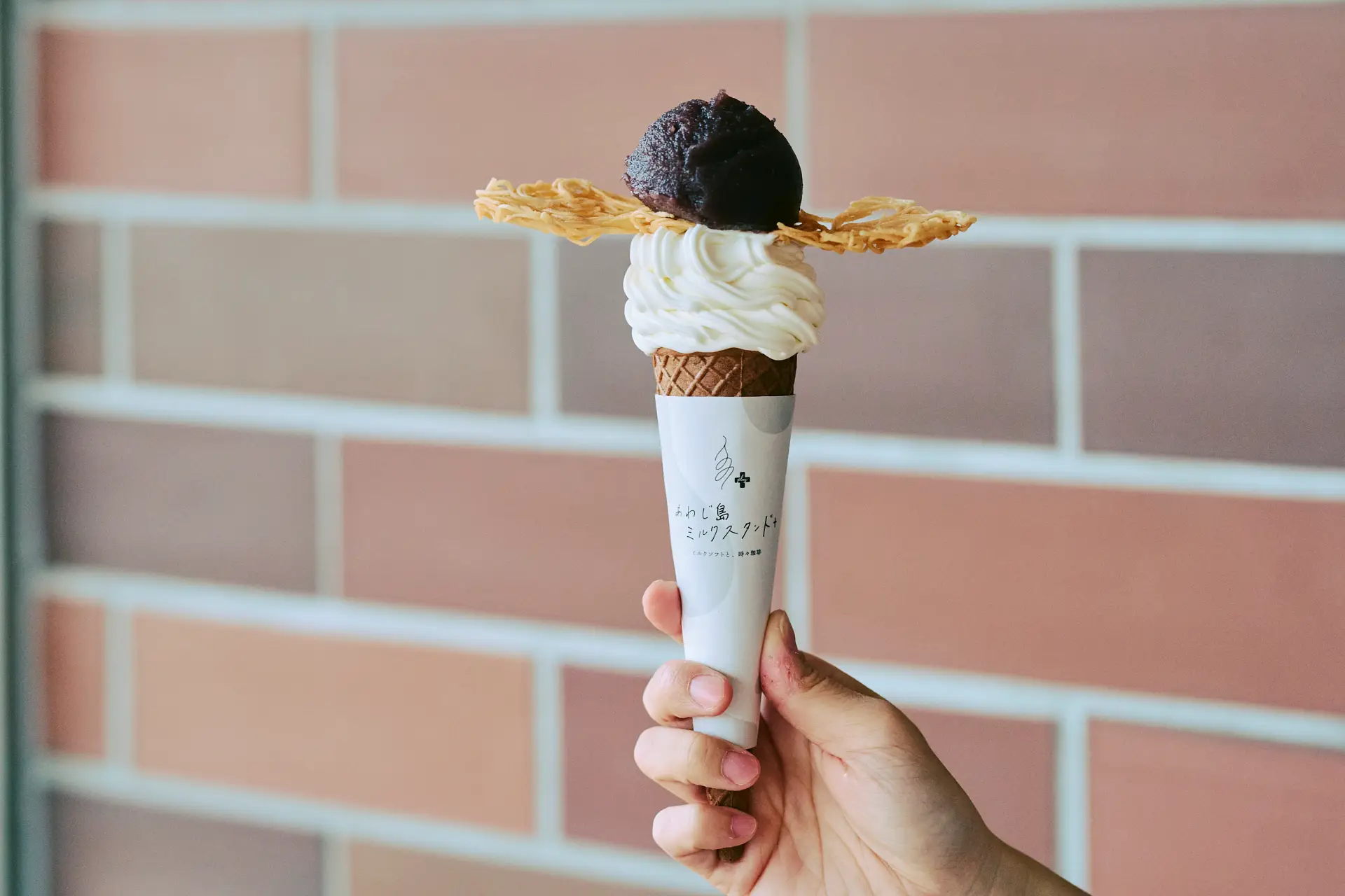 ソフトクリームに「うず塩あんこ」をトッピングした「This is あんバランス ~食べる時はカップにどぼん~」