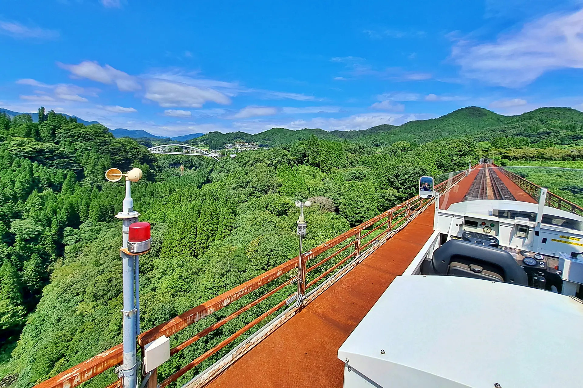 鉄道橋としては、当時、日本一の高さだった「高千穂鉄橋」からの車窓として人気を集めた。今も変わらないステキな景色が広がる