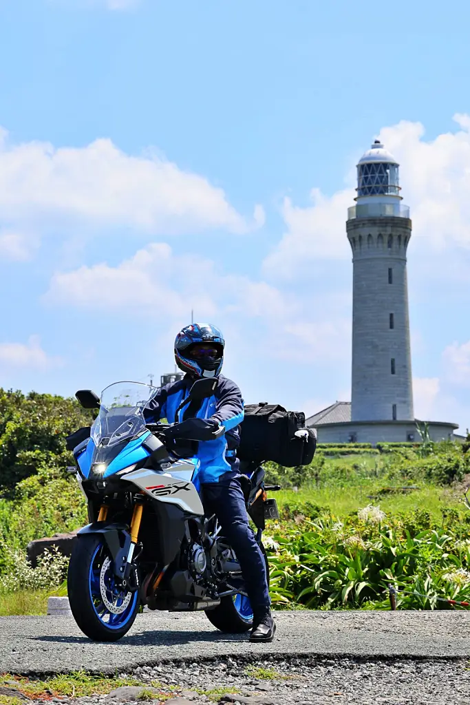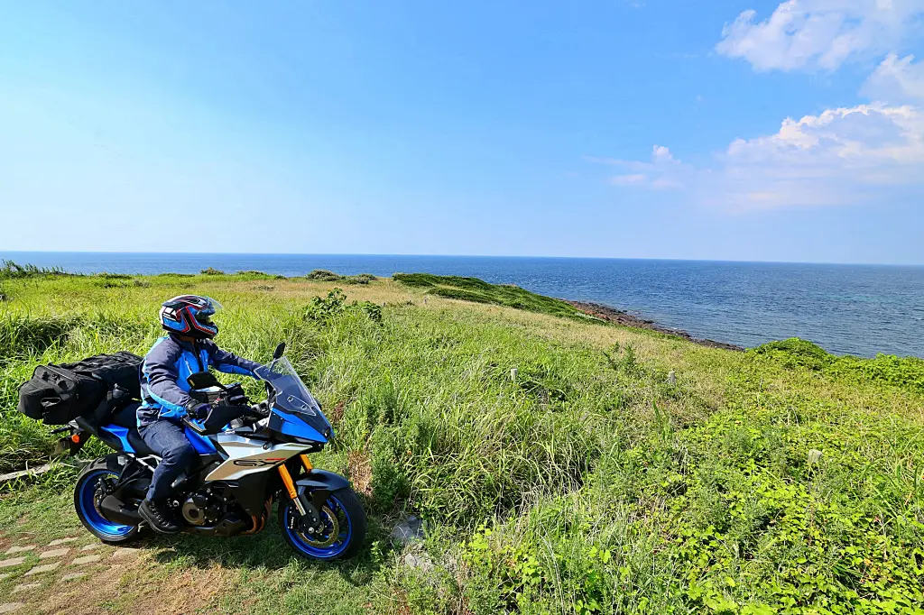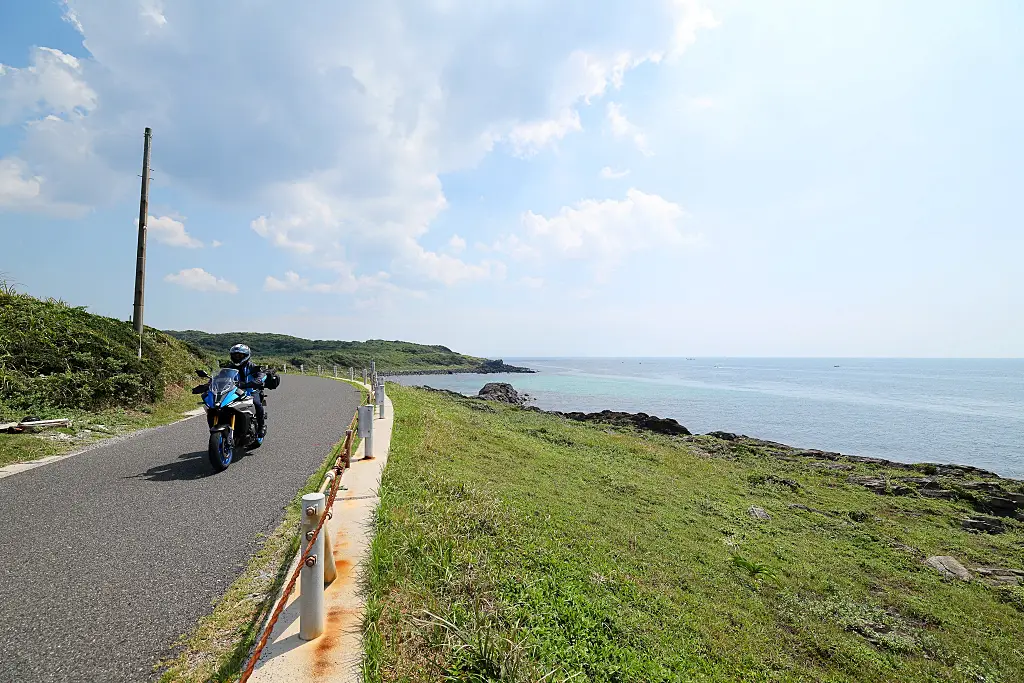 角島灯台付近を気持ちよく走行。素敵な天気、風景の中での撮影は楽しいものです!
