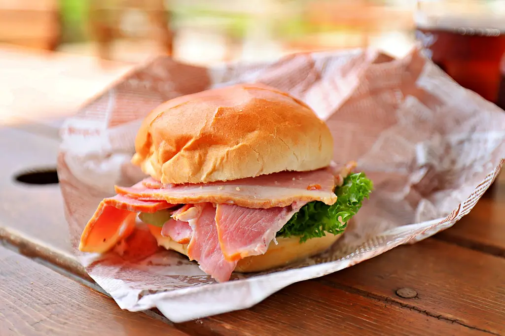 ベーカリーではないですが、「道の駅 ソレーネ周南」[ツーリングマップル中国・四国 P.66 B-2]のビストロ鹿野農場の「はみ出るハムサンド」。 こちらも、以前から気になっていたのですが、表紙撮影の休憩時に実食