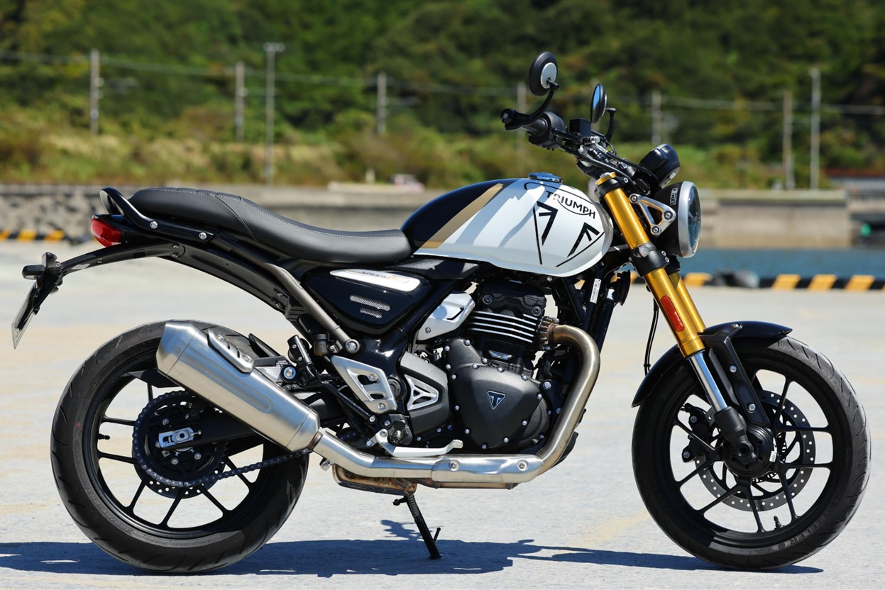 関西エリアはトライアンフのスピード400。2023年に発表され、日本では2024年に発売された、中型二輪免許で乗れるトライアンフの新しいバイクです。無駄をそぎ落としたシンプルな見た目で、「バイクで走る楽しみ」を存分に味わえそうですね~。