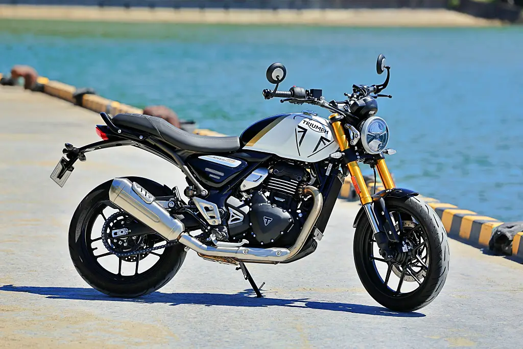 水冷単気筒エンジンを搭載したモダンクラシックモデル。トライアンフのロゴが描かれたタンク、空冷エンジンをイメージさせるクラシカルなデザインのエンジンといった、美しい意匠に、ABSやトラクションコントロールといった最新装備も搭載。
