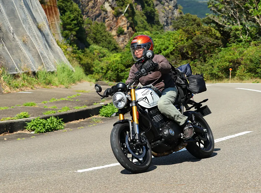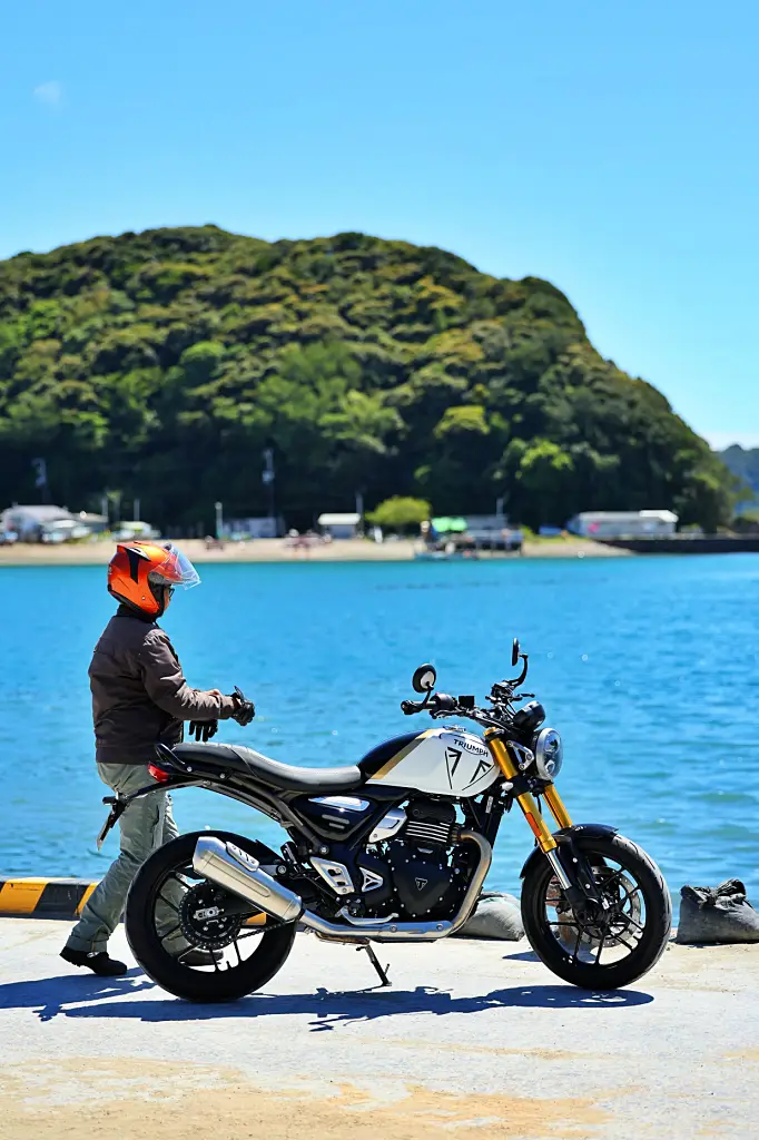 SPEED400は誰にでも乗りやすく、扱いやすいバイクだと感じた。見た目もスタイリッシュで、どんな風景にも映えるので、写真撮影にも気合が入った。 2026年度版の表紙撮影では、南紀がメインの撮影地でしたが、青い海をバックにしたSPEED400ちゃんの、なんと美しいこと!クラシカルな外観なので古い街並みにも妙にマッチする。ライダーウエアをもっとお洒落なものにすれば、さらによかったかな。 余談だが、東京に戻って公園脇で休憩していたら、落ち着いた雰囲気の女性に、 「わあ、トライアンフのバイクですね。白洲次郎さん※も乗っていたんですよね」 と声を掛けられた。さすが英国仕込みのダンディな白洲次郎さん、トライアンフに乗るライダーでもあったんですね。自分のバイクじゃないけれど、ちょっとうれしかった。 ※)白洲次郎氏は、英国で学び、第二次世界大戦後の外交交渉で活躍した実業家