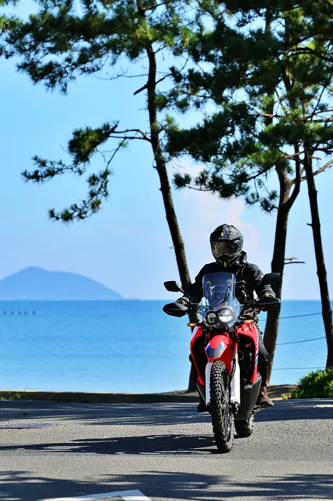 まず、車両を迎えに行っての感想は 「おお!かっちょい~」 ダカールラリーにも参戦している「CRF450 RALLY」のレプリカモデルだけあって、大きなウインドシールドが印象的。どこへでも連れて行ってくれそうなバイクで、 「運転が楽しそう!」 というのが初対面の感想。
