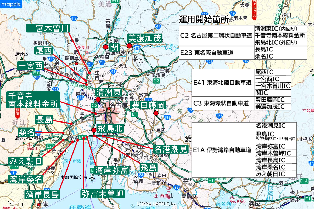 名古屋周辺の運用開始料金所。東名、名神は現時点で「ETC専用料金所」は無し