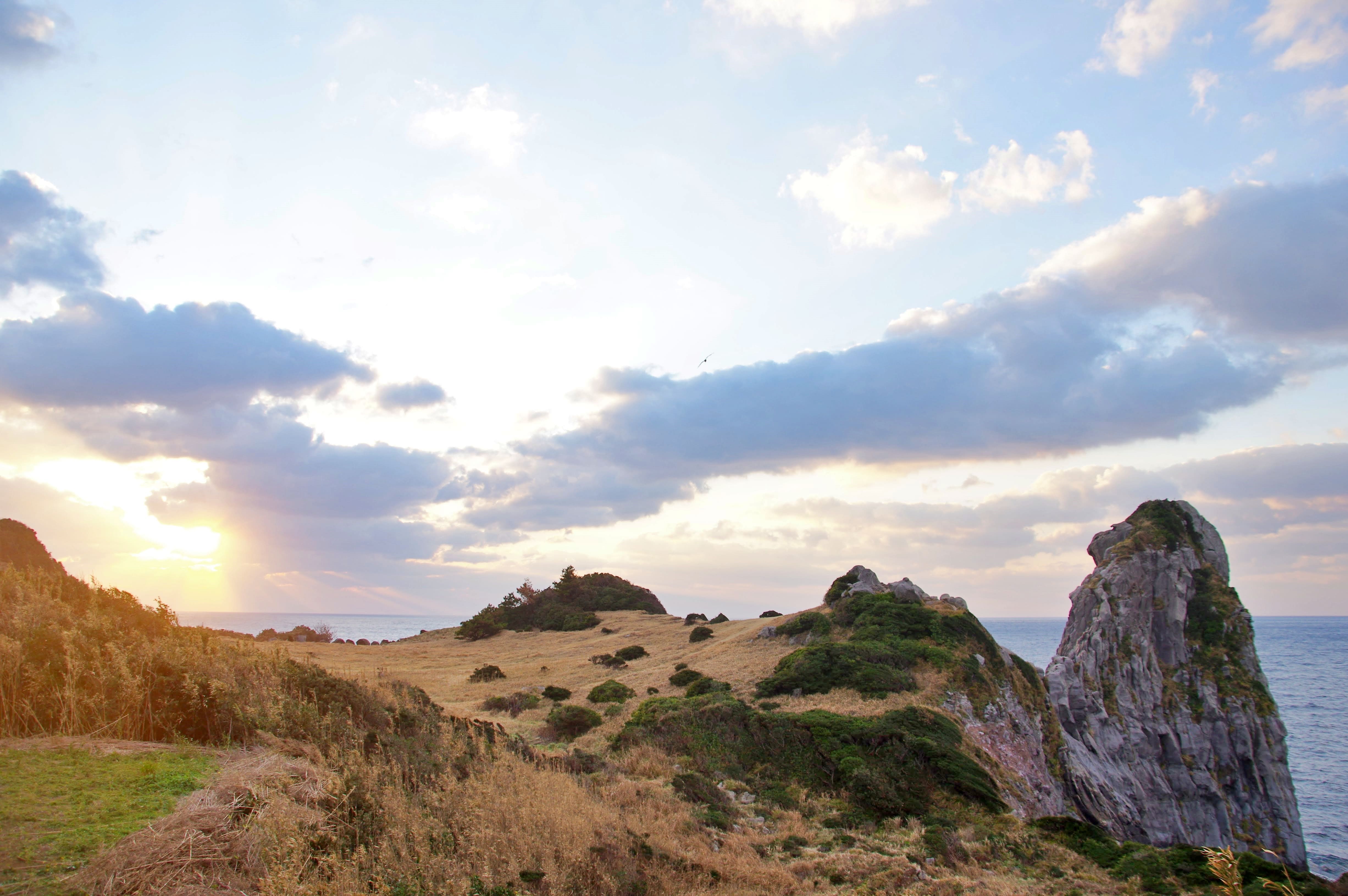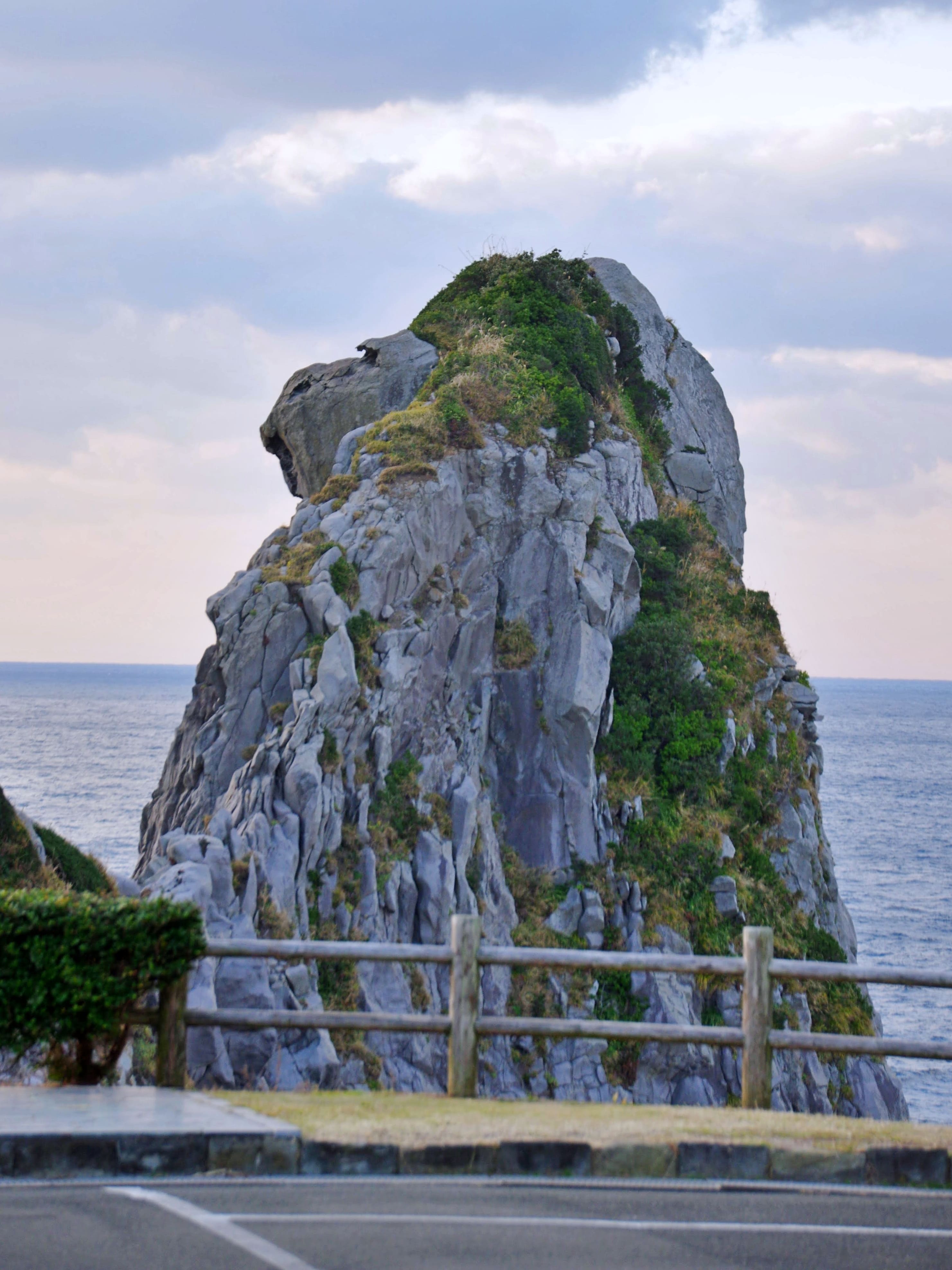 長崎県壱岐市(九州沖縄 64 J-7) 最後はわたくしチョイス。個人的には日本の「●●岩」の中でナンバーワンじゃないかと思っております。それが長崎県の壱岐島にある「猿岩」。実はある時、ある仕事で壱岐島内をママチャリで走りまくったことがあるのですが、バッテリーの切れたクソ重い電動ママチャリで、坂道を登った先に猿岩が現れた瞬間の感動は忘れられません。これは見る価値のある岩です。なんせ大きさも十分なのです。大きさと形どちらも備えた岩はなかなかありませんから。見れば「うわ・・・猿すぎる・・・」と声が出ることでしょう。神話では壱岐島が流れてしまわないように神様が建てた「八本柱」の一つと言われているそうです。夕暮れ時には、お猿さんが沈む夕陽を見つめる姿を見ることができます。