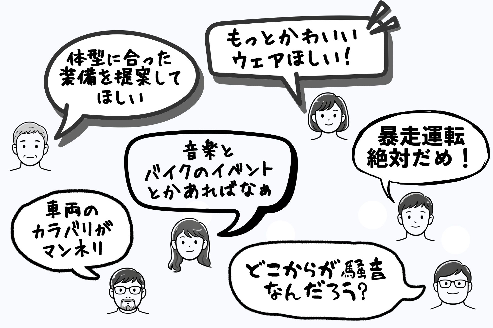 もともと(ツーリング)バイクというのは日常生活とは縁遠い。非日常を楽しむためのものなのだ。その割にお金がかかる気がする。事故をすれば大けがを負うリスクが高い。リスクを減らすプロテクターなどの装備、いざというときの保険にもお金がかかる。冬走るなら防寒装備が必要だし、夏走るなら暑さ対策が必要だ。初期コストも高いし、たくさん乗るほどリスクもコストも増える。移動手段として考えるなら、 「車でいいじゃん」 この一言で片づけられる。一般感覚からすると、それだけ非合理・非効率で、選ぶ理由がない。そうやって家族にバイクを止められた人も多いだろう。こんなバカげた趣味に入って行けるのは、頭のイカれた人だけなのだ。そして頭のイカれた人はやはり男性の方に多かった(偏見)。