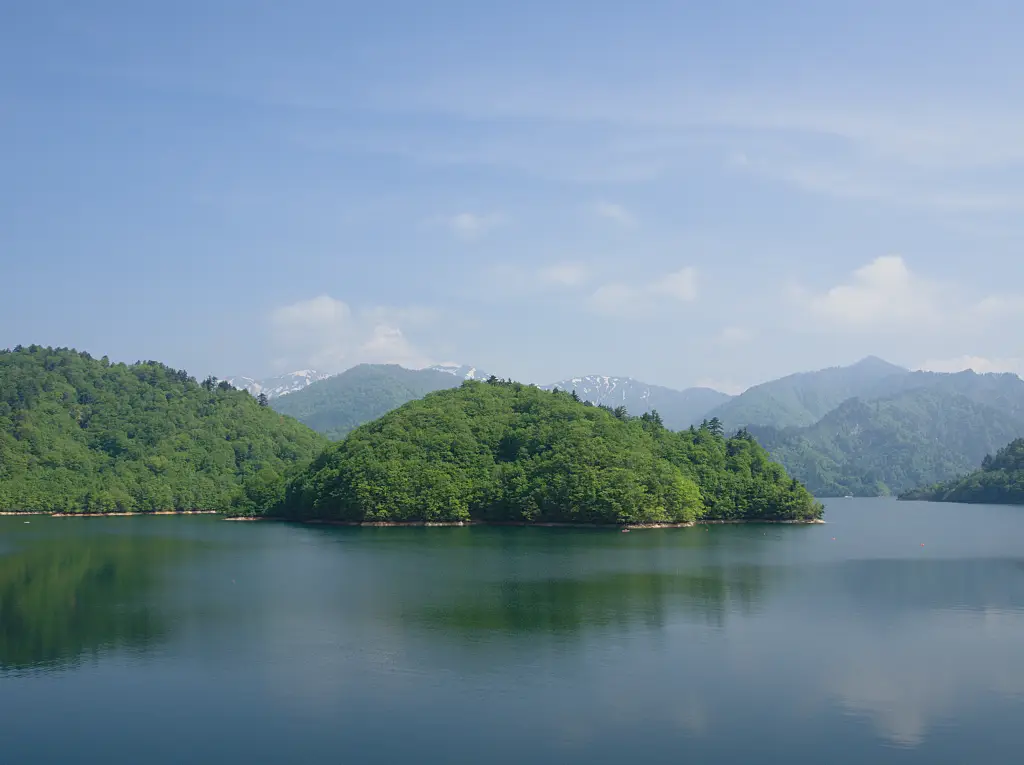 矢木沢ダムの奥利根湖。湖面の向こうには利根川のふるさとの国境の山並み