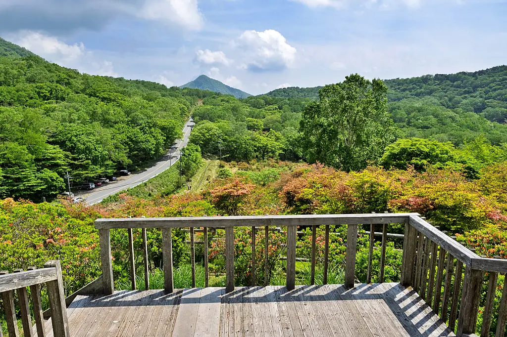 赤城山の初夏を彩るのが「レンゲツツジ」と「ヤマツツジ」です。山頂の大沼近くにある「白樺牧場」が一番の見どころで、「赤城山総合観光案内所」のデッキがおすすめのビューポイントです。山は新緑で一面の緑色。その中に赤いツツジの花が咲きほこる景観は、まさに絶景です。 ツーリングマップル➡関東甲信越 P.63 F-2