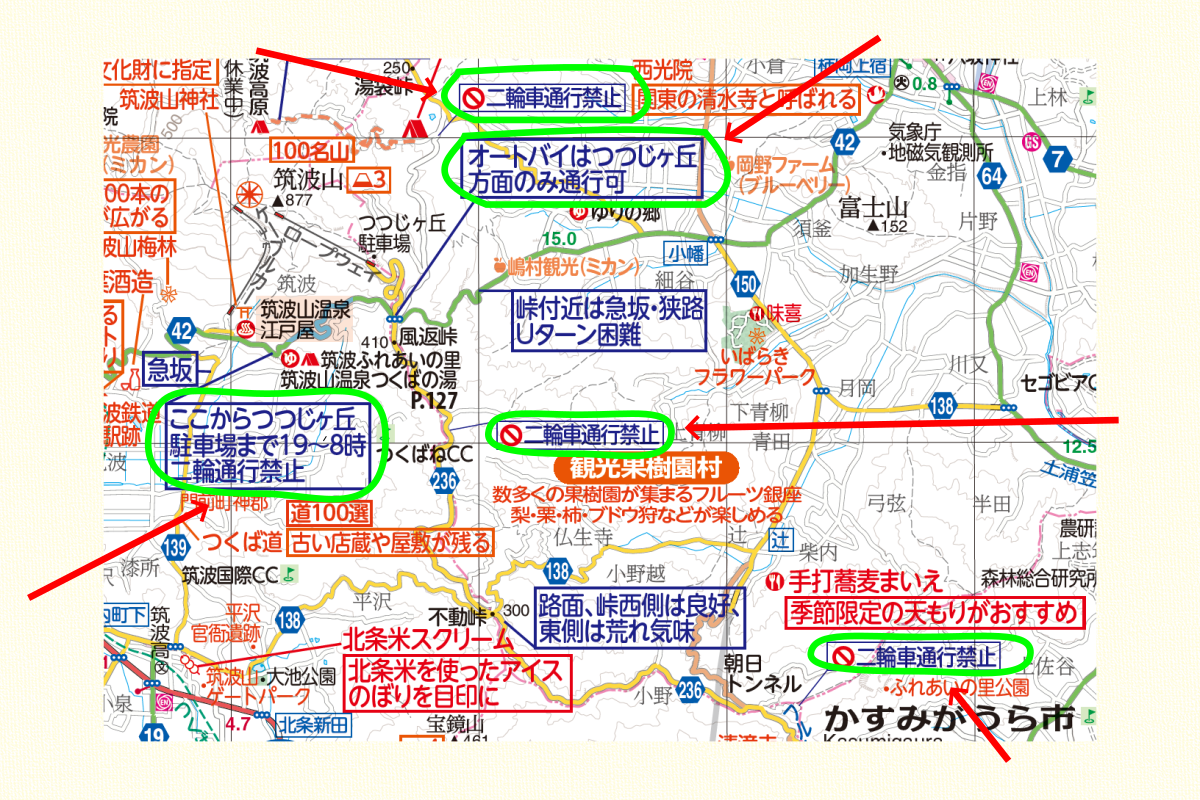 筑波山スカイラインをはじめ、筑波山周辺はあちこちに二輪規制あり